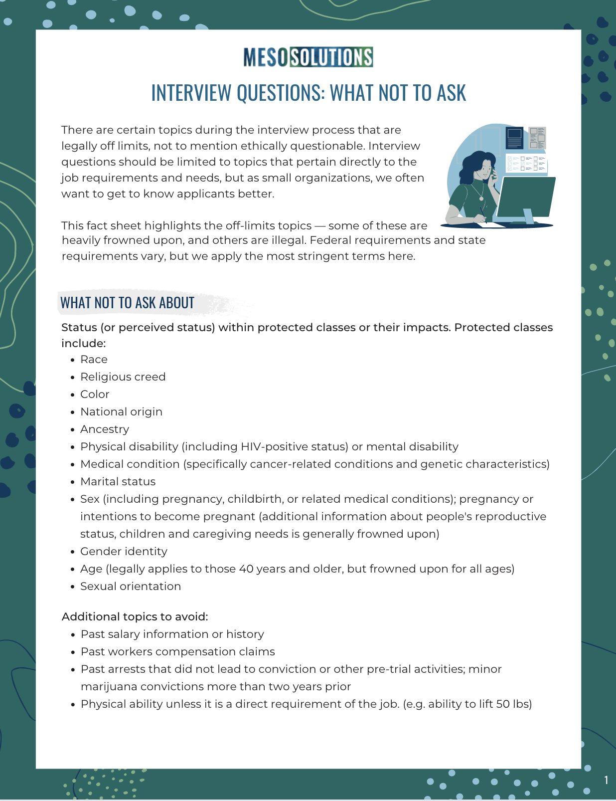 Our founder shares tips for what questions to avoid in hiring interviews, whether for legal or equity reasons.